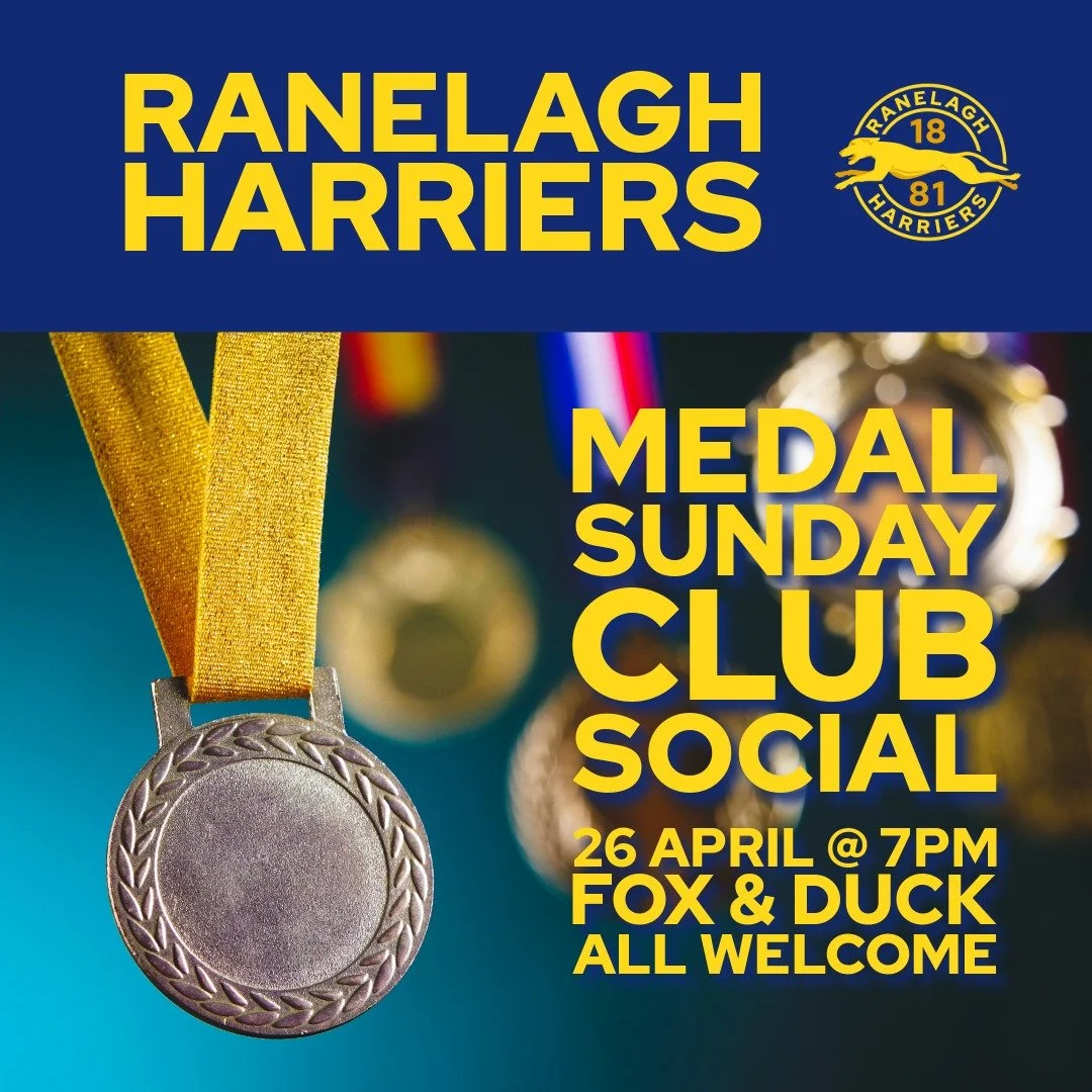 ▪️Sun 26 Apr: Medal Sunday Club Social 7pm @ Fox & Duck. Celebrate Ranelagh’s spring marathon achievements with our London Marathon finishers! All welcome.